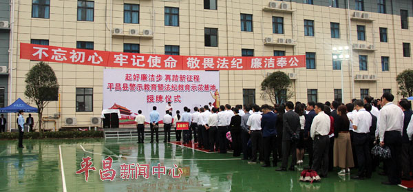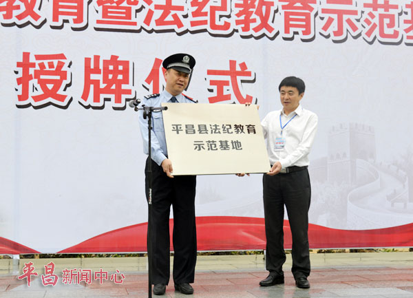 授牌仪式上蒲开文为平昌县公安局战训基地“法纪教育示范基地”授牌;张华宣读了《中共平昌县纪委、县委宣传部关于命名一批法纪教育、红色文化、家风建设示范基地的通知》。