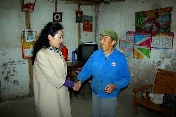 涂虹与贫困群众亲切握手